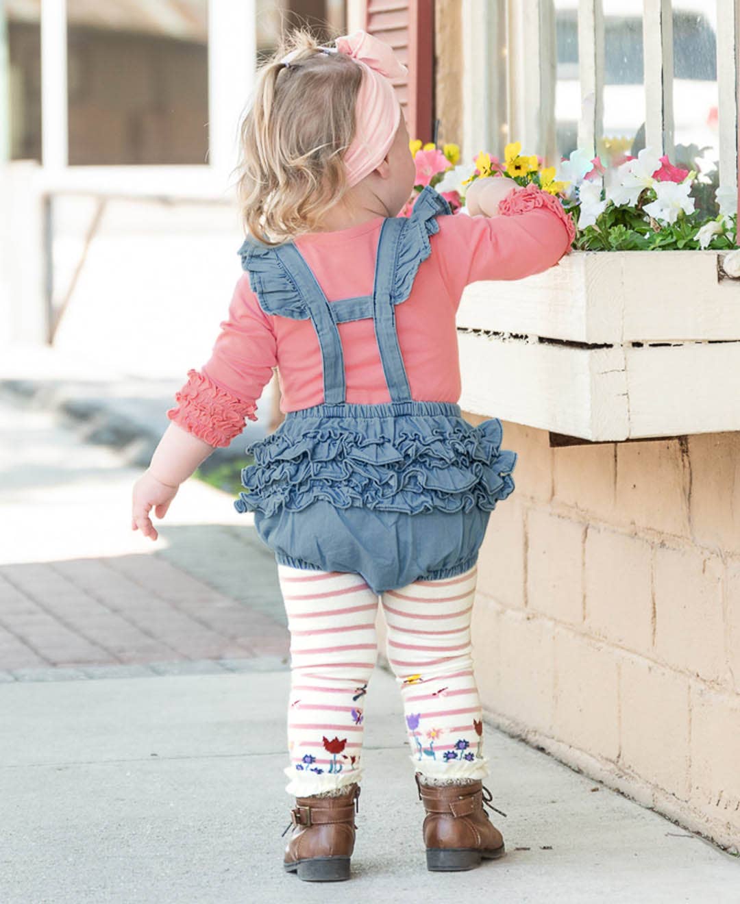 This sweet flutter romper is perfect for any occasion! Layer with a long sleeve tee and tights for cold weather, or pair with just a bow headband for warm summer months! The light wash denim makes it easy to coordinate and create a beautiful outfit. Due to the unique nature of denim, color variations may occur between batches. We consider this part of its charm, and is not a defect. Care Instructions: Machine wash cold, only non-chlorine bleach when needed, tumble dry low Fabric Content: 100%