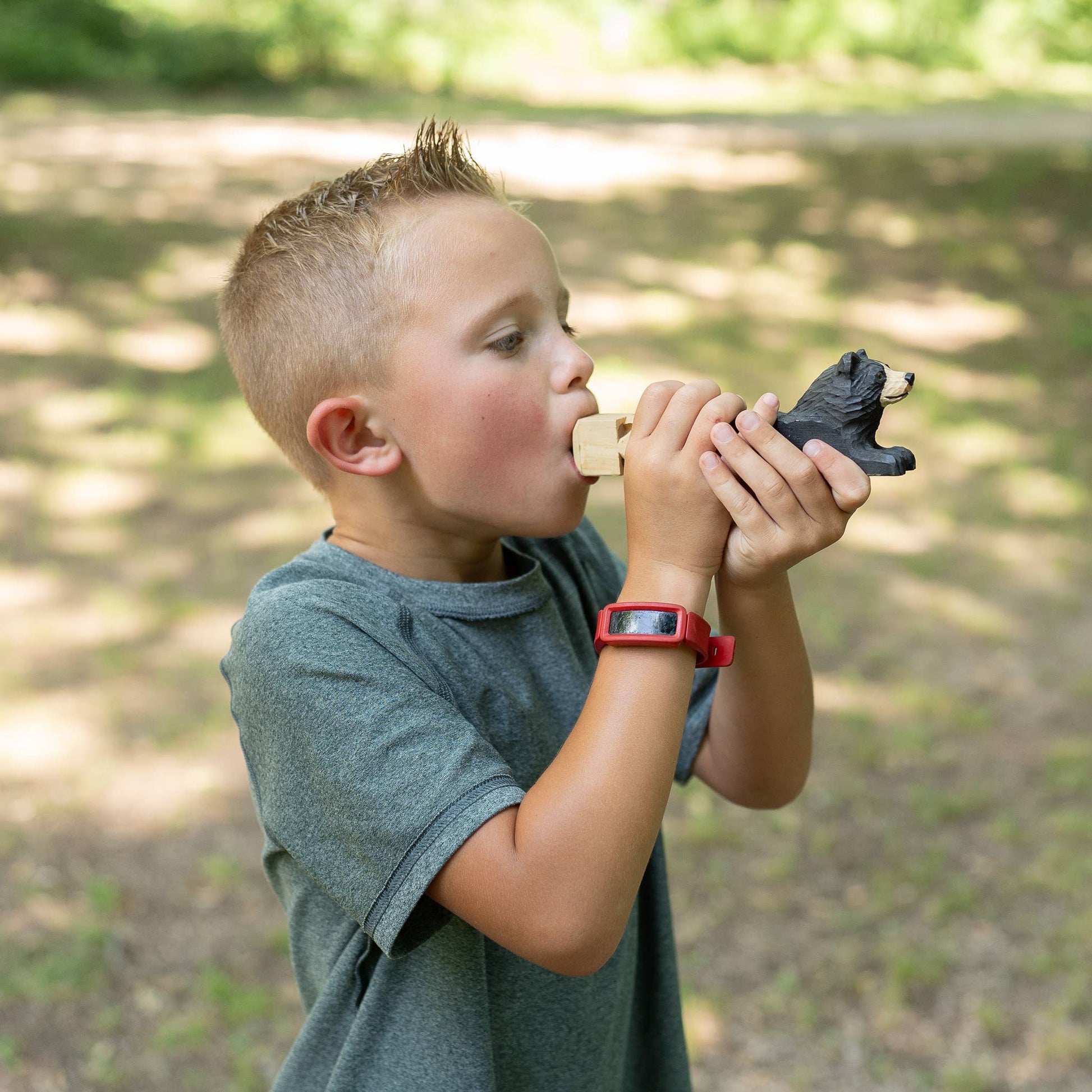 These 7-inch hand-carved animal train whistles bring a rustic charm to a classic toy. Crafted from wood and available in bear, eagle, and wolf designs, each whistle is carefully detailed to showcase the beauty of these majestic creatures. With a rich, natural finish, they produce a loud and authentic train whistle sound, making them fun for kids and collectors alike. Perfect as a gift, souvenir, or keepsake, these animal-themed whistles are a delightful blend of craftsmanship and playful nostalgia.