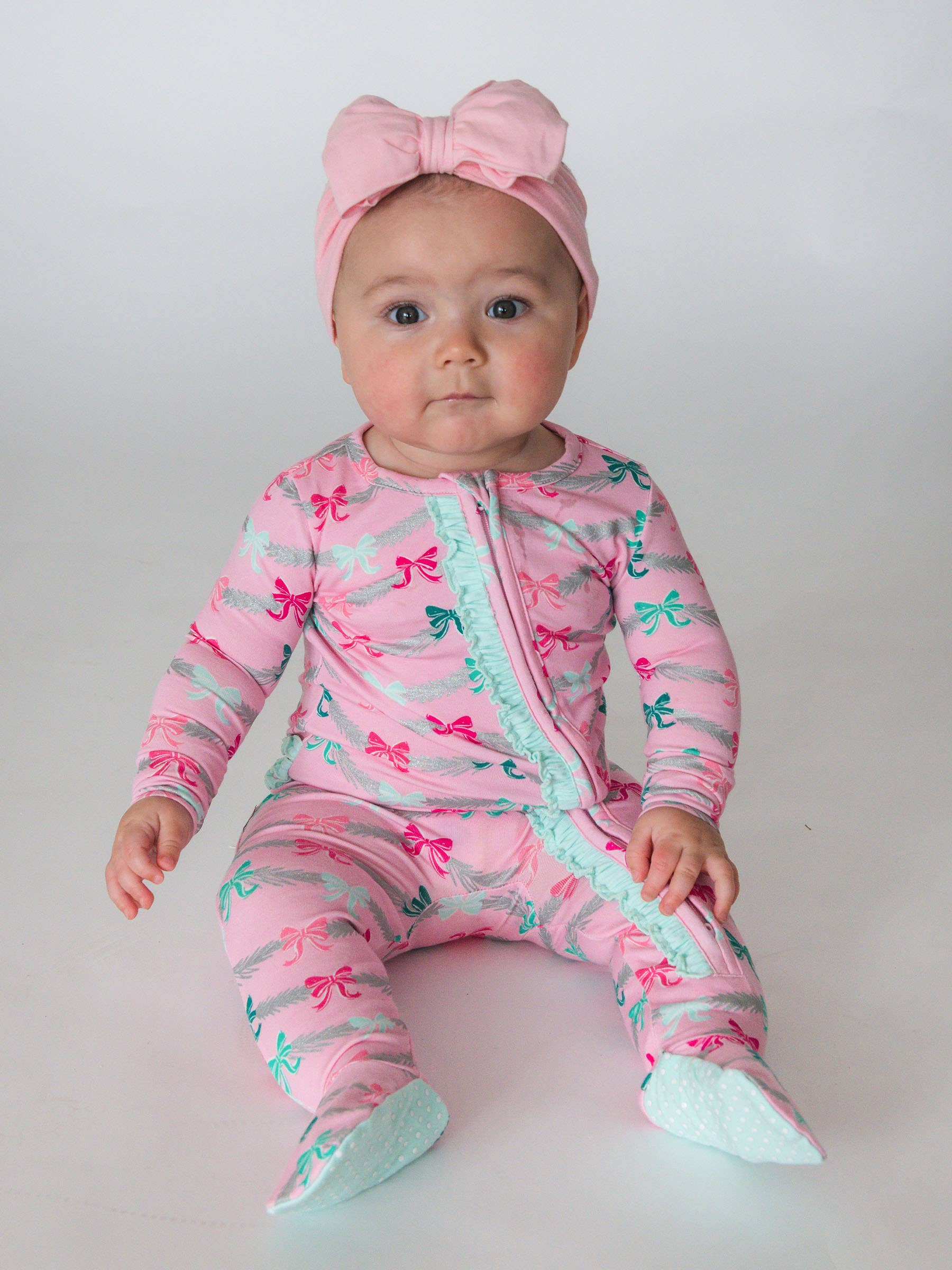 This ruffled sleeper is soft and cozy on baby's skin, with precious ruffles that will bring a smile to your face. A two-way zipper makes changing a breeze, so everyone can get the best night's rest. Grips on the feet will help early walkers have steady footing. Featuring foldover mitts on Newborn and 0-3m sizes. Tagless for added comfort. Made from our premium SoftSnooze™ cotton modal blend, these jammies are super cozy and soft. The snuggly modal fabric is pill-resistant and great for embroidery or personalization!