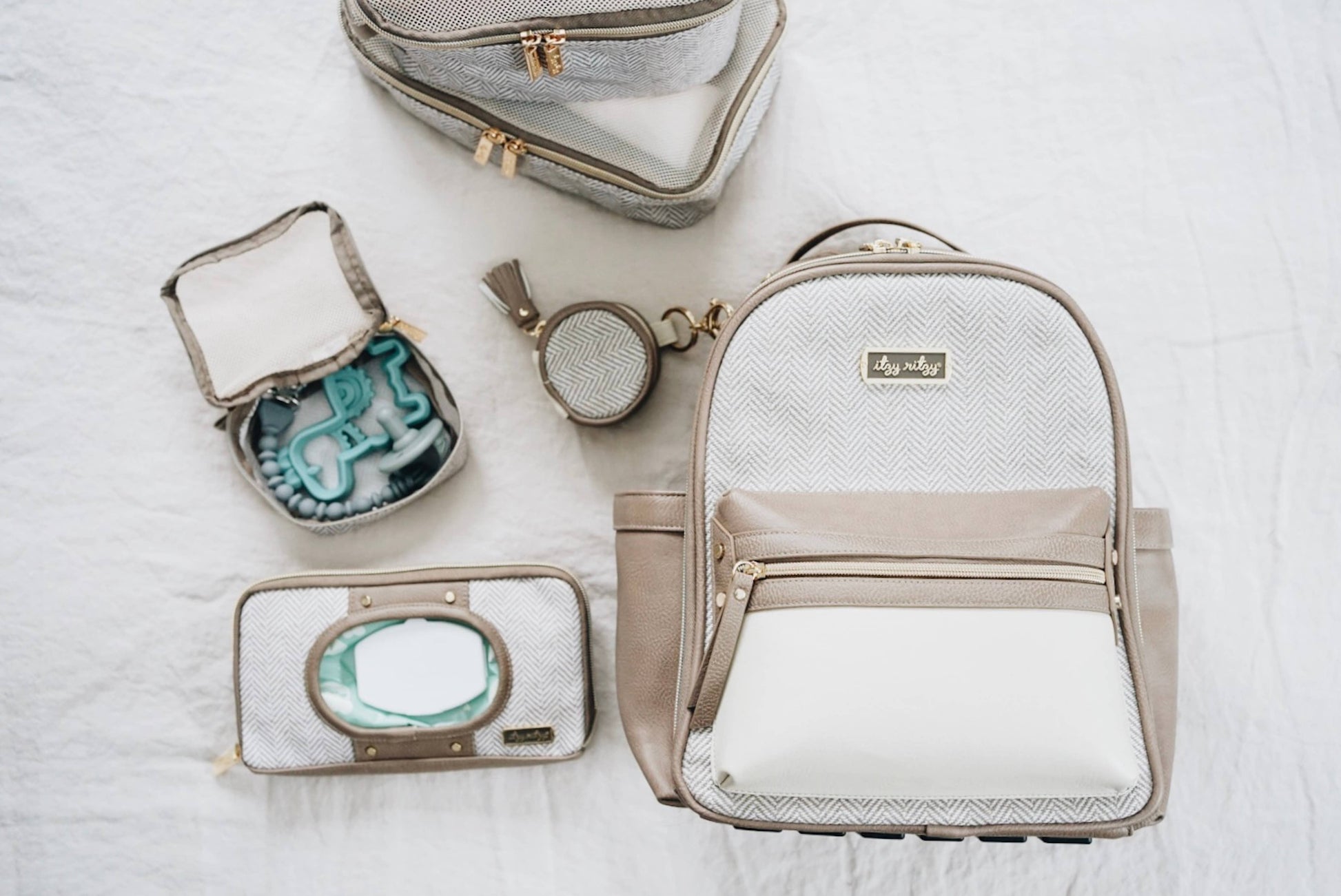 Fashion Meets Function! This multi-use pod from Itzy Ritzy clips onto your diaper bag to keep essential items easily accessible. It is designed to hold two pacifiers but can also store parent necessities like headphones, change, lip balm or keys. It’s the perfect way to add some functional flair to your diaper bag!
